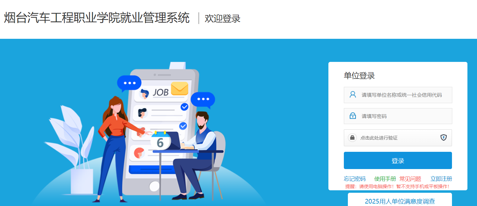 1、登陆烟台汽车工程职业学院就业管理系统http://ytqcvc.sdbys.com/