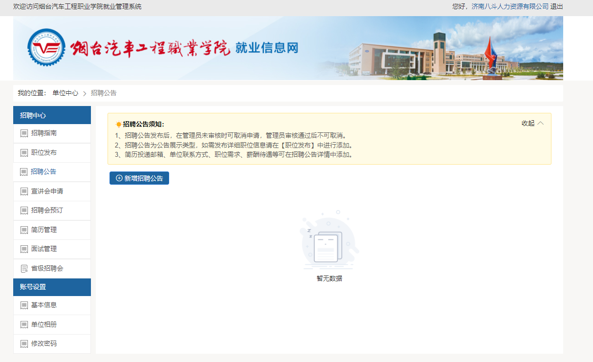 3、进入招聘中心界面,选择发布招聘公告或宣讲会